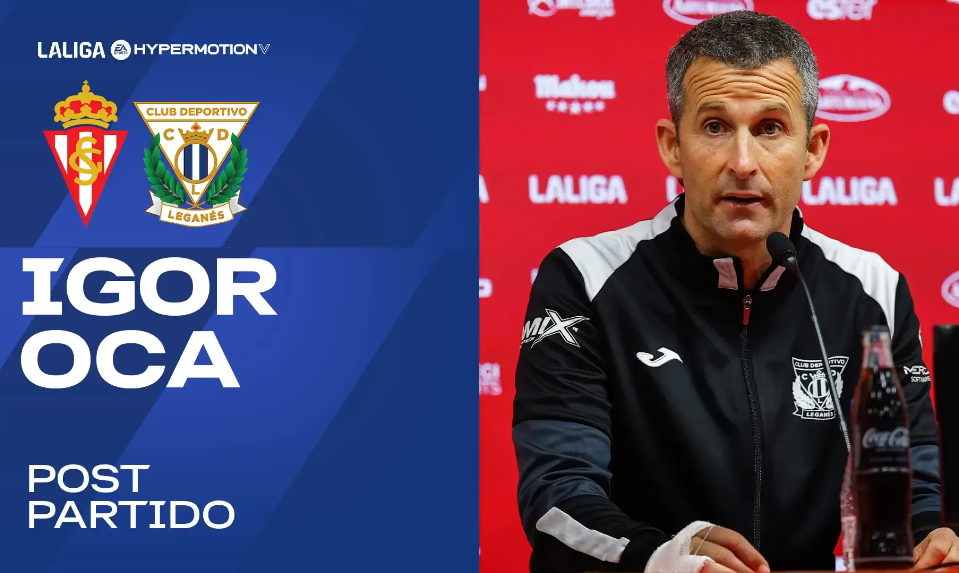El entrenador del C.D. Leganés, Igor Oca, compareció en rueda de prensa al término del partido que enfrentó al equipo pepinero y al Real Sporting en Gijón, correspondiente a la vigésimo octava jornada de LALIGA HYPERMOTION, y que finalizó con empate sin goles.